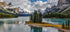 Amid a glacial valley framed by proud, jagged peaks, a lone cluster of evergreen sentinels rises from an emerald islet. This is nature’s untouched cathedral. Still waters hold secrets, and clouds drift slowly over a land that time refuses to change.