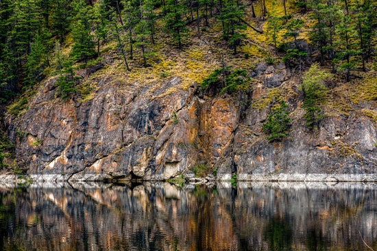 Where forest clings to ancient cliff and still water mirrors every detail, silence reigns. Time settles into the granite as if each crack and pine remembers stories of wind, weather, and waiting. This is nature’s quiet strength—unshaken, unmoved, eternal.