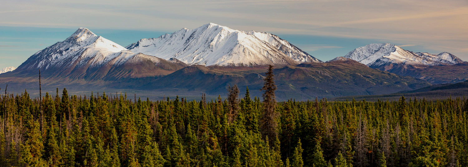 A tranquil alpine lake mirrors a picturesque scene: a rustic wooden cabin nestled among towering pines, a long wooden bridge stretching across the water, and snow-covered mountains rising majestically under a softly glowing evening sky. The golden light and still waters create a serene and inviting atmosphere.