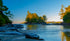A quiet inlet cradles an emerald islet bathed in the day’s first golden rays. Gentle tides trace the shoreline as dawn awakens the forested coast, casting shimmering reflections across calm waters.