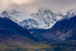 A breathtaking view of sharp, rugged mountain peaks partially cloaked in pristine snow beneath a deep blue sky. The stark contrast between the dark, textured rock formations in the foreground and the glistening white summits creates a dramatic and powerful natural scene. A stunning display of raw alpine beauty.