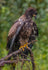 A young bald eagle perched gracefully on a mossy branch, its feathers rich with earthy tones and subtle markings. The soft, blurred forest backdrop enhances the eagle’s striking profile and sharp gaze. This captivating scene offers a glimpse into the quiet strength and natural beauty of this magnificent bird, making it a wonderful accent for any room.