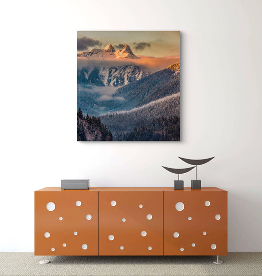 Breathtaking winter magic as the sun sets, casting an orange glow on the snow-capped peaks. Nature’s beautiful canvas! #landscape #nature #winter"