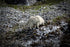 A heartwarming scene of a mountain goat and its young navigating a rugged, rocky slope. The mother leads the way across patches of green and stone, with the kid following close behind. A beautiful capture of wildlife in its natural alpine habitat, perfect for nature lovers and outdoor-themed decor.