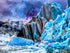 Jagged blue glaciers rise like frozen cathedrals, streaked with inky tones and kissed by splashes of violet and magenta. The sky above carries a painter’s touch, blending storm and story. This piece captures the untamed energy of ice shaped by time and imagination.
