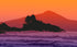 Waves roll in gentle rhythm as silhouettes of trees and mountains fade into a glowing gradient of orange, rose, and violet. This artwork captures the quiet hush of evening, where sea and sky blur into color and calm. Peaceful, poetic, and full of atmo