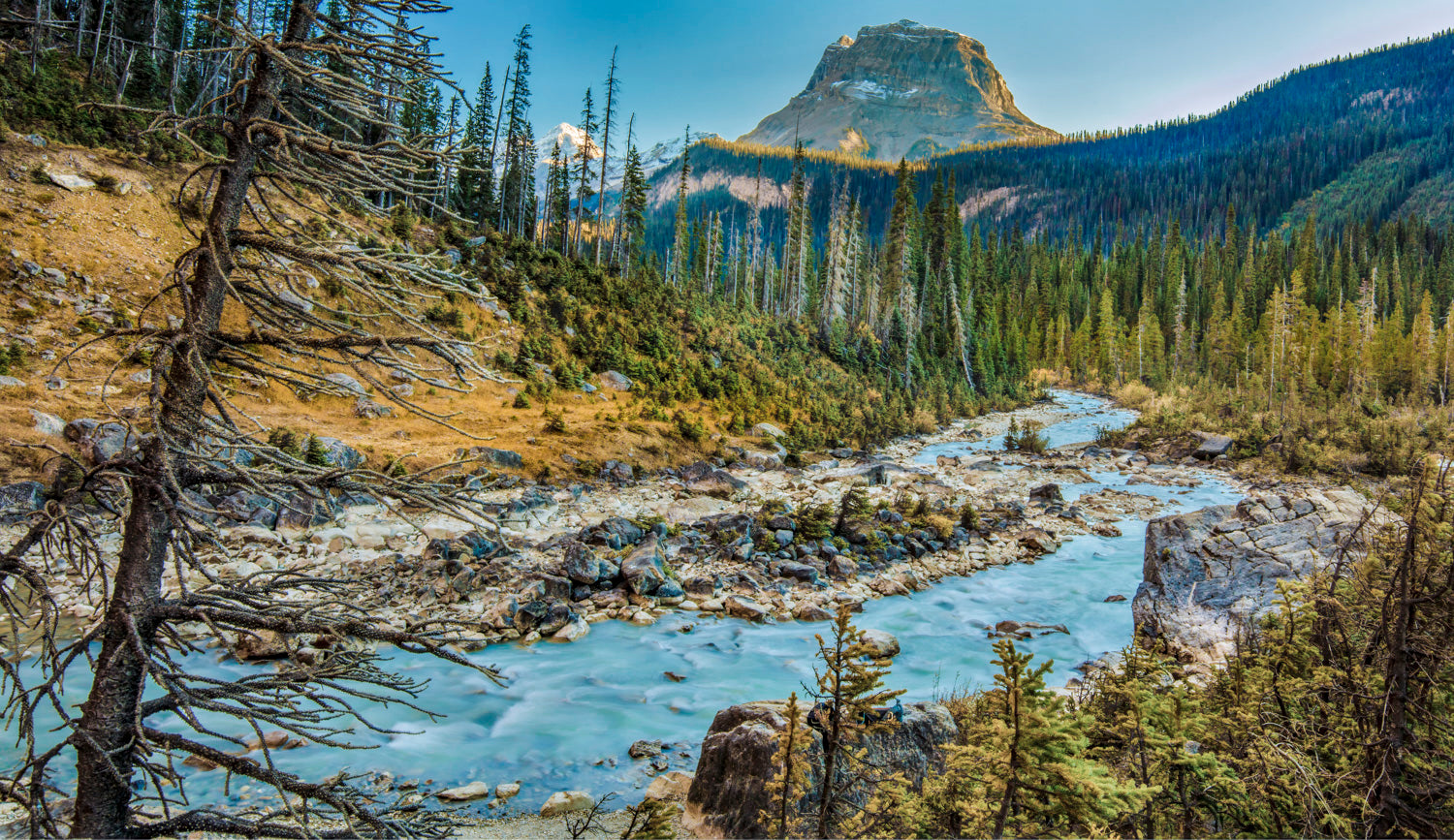 In a rugged corridor of wild stone and sky, a glacial stream winds through a forest still whispering of ancient winds. The mountains rise like sentinels behind a tangle of evergreens, and even the fallen trees seem to bow in reverence to the enduring rhythm of the land.
