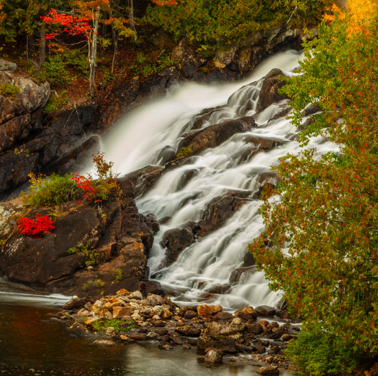 Among golden boughs and crimson leaves, a stepped cascade tumbles with grace and rhythm. Each tier of stone cradles the water like a memory etched in earth. This is autumn’s lullaby, where nature moves softly and burns brightly.