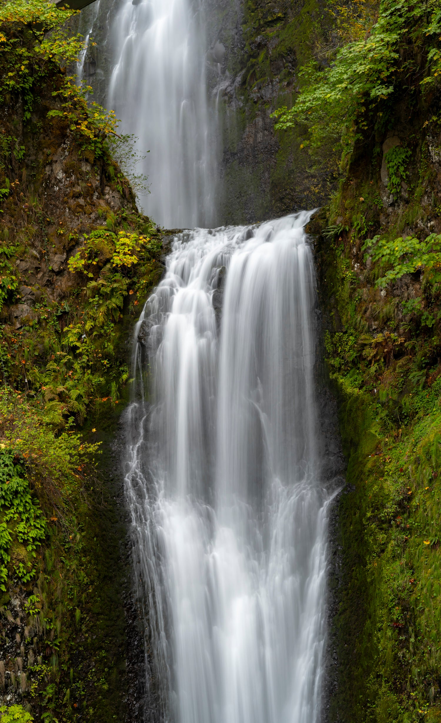 A soft cascade tumbles over moss-laden ledges, embraced by lush greenery. Here, the air hums with the gentle rhythm of falling water, inviting a moment of reflection beneath nature’s timeless canopy.