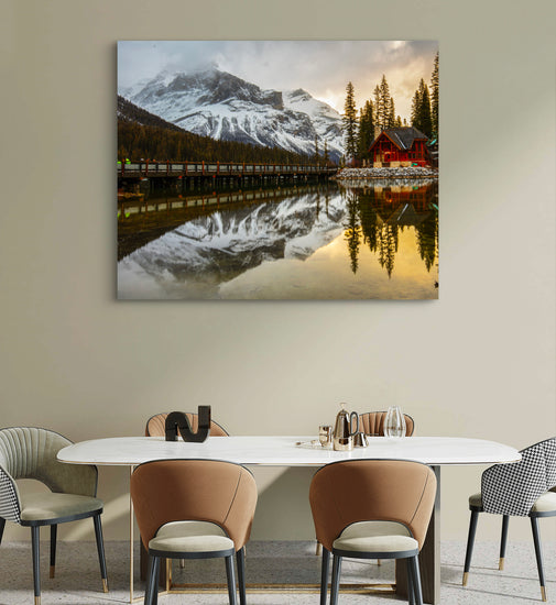 Nature's masterpiece: where mountains meet trees in a serene embrace, reflecting sculpted light upon the tranquil waters. #outdoor #landscape #wilderness #reflection"